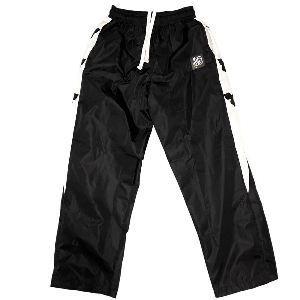 These track pants have mesh lining and are made water-repellent, to help provide coverage from light rain. Sweat-wicking, elastic waist.